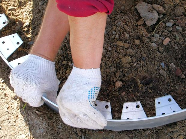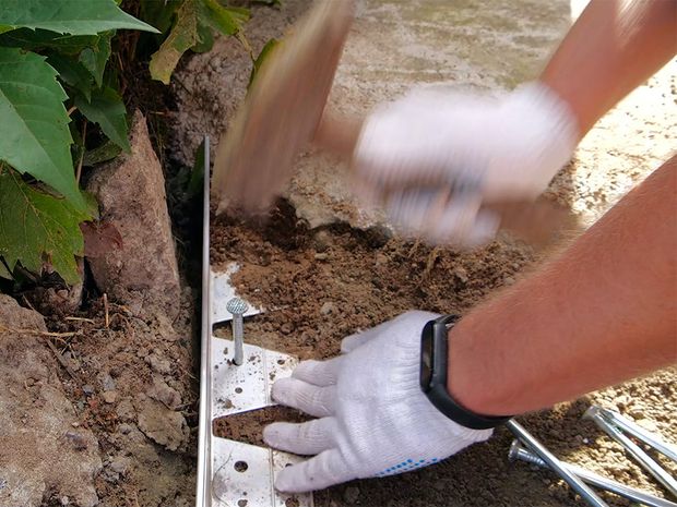 При установке на утрамбованный грунт подсыпайте 0,5-1 см песчано-бетонной смеси под основание бордюра.