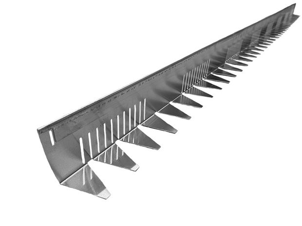 С перфорацией. L-образный. Высота бордюра 100мм, длина бордюра 2427мм, ширина основания 7см, толщина 1,5мм, верхняя часть завальцована.