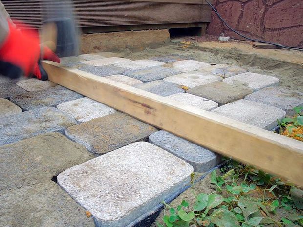 Место установки бордюра требует предварительной подготовки: грунт уплотняют и выравнивают для последующего монтажа. Затем выполняют разметку линии установки бордюра. Уровень профиля бордюра отметьте натянутой проволокой или леской. Верхнюю кромку бордюра установите на 5 мм ниже уровня дорожки.