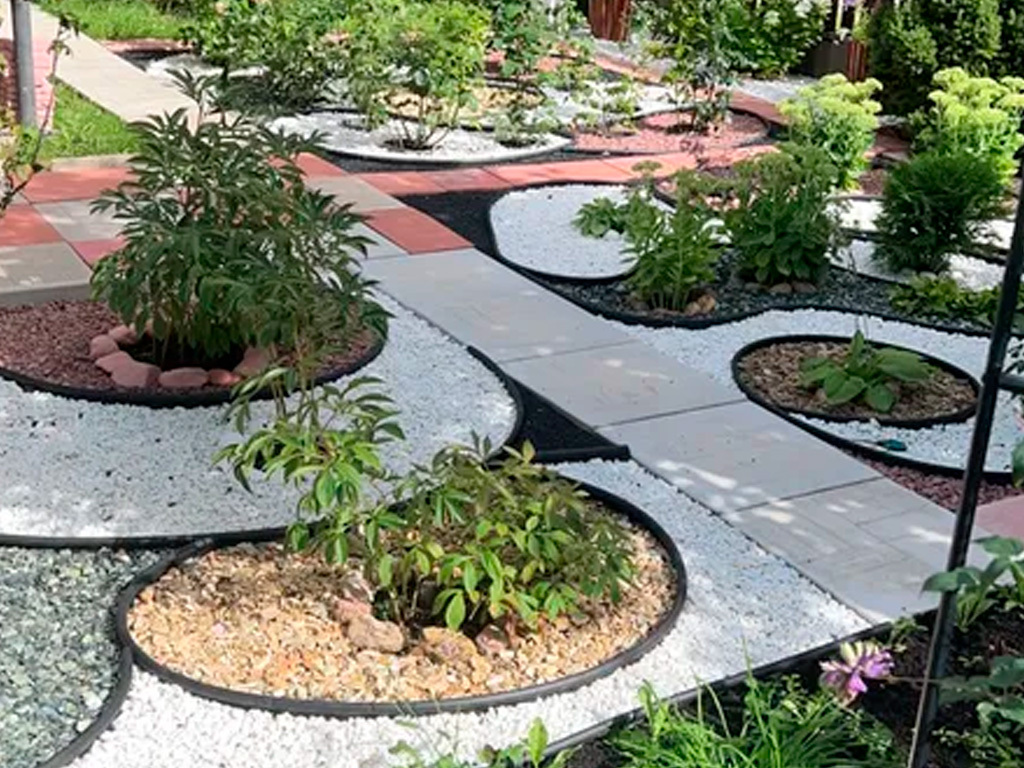 - Гибкость делает возможным применение бордюра при обрамлении сложных геометрических форм, в том числе малых радиусов.