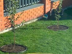 Бордюр вкапывается в грунт, трубка остается сверху и разделяет декоративные зоны. Для предотвращения выдавливания из земли рекомендуется использовать 8-10 крепежных колышков на 10 метров бордюра.