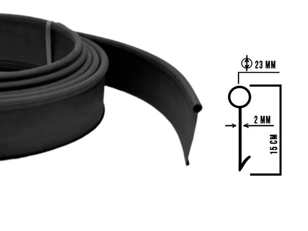 Толщина бордюра 2 мм, трубка высотой 23 мм. Полная высота бордюра с трубкой 15 см.