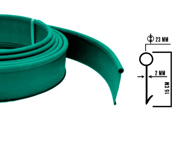 Толщина бордюра 2 мм, трубка высотой 23 мм. Полная высота бордюра с трубкой 15 см.