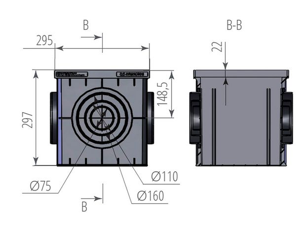 Применяется для частных домовладений, пешеходных и парковых зон, приёма воды с открытых площадок и кровельных водосточных труб. Возможна схема установки один на другой для наращивания высоты. Может комплектоваться различными видами решеток или крышкой.