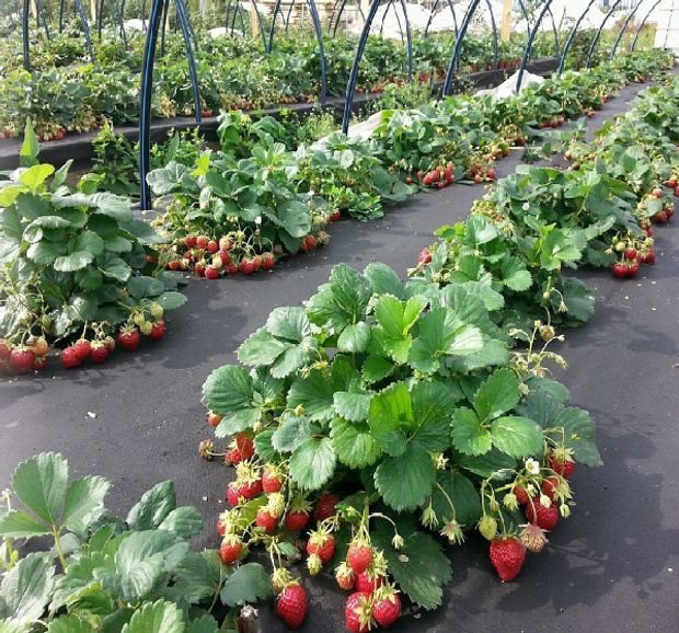 - Разложить материал на грядке, вырежьте отверстия и посадите растения.