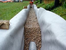 - Фильтрация – структура материала исключает попадание частиц грунта в поры полотна и предотвращает засорение, поэтому используется при обмотке дренажных перфорированных труб.
