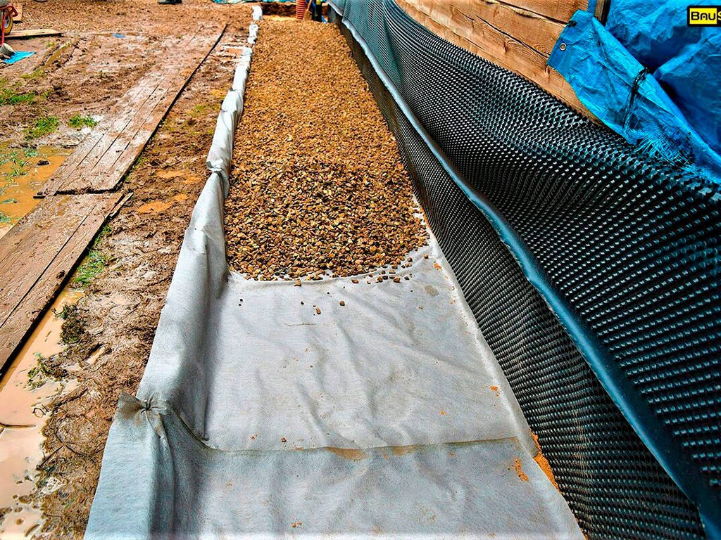 - Фильтрация – структура материала исключает попадание частиц грунта в поры полотна и предотвращает засорение, поэтому используется при обмотке дренажных перфорированных труб.