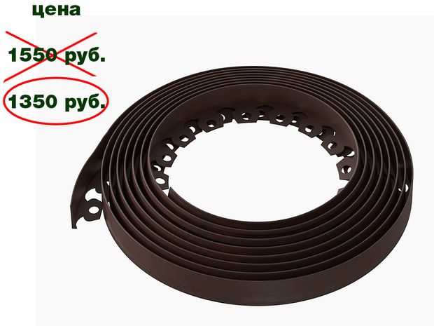 Садовый пластиковый бордюр ГеоПластБорд Манго, высота 38 мм, в комплекте с 30 крепёжными кольями. Цвет коричневый.
