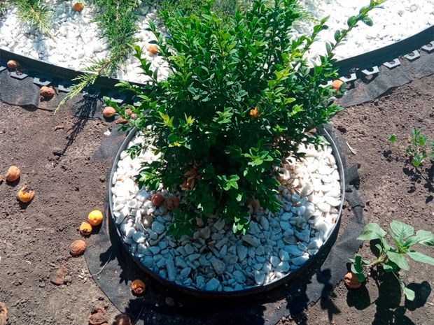 после того как Вы установили (прибили к земле) садовый бордюр Манго, его необходимо скрыть (землёй, газоном, мульчей или другими материалами, которые бордюр разделяет. В видимой части должна оставаться только верхняя кромка. Данное действие необходимо для того, чтобы при резком перепаде температур бордюр не подвергался температурному расширению. Сам материал, из-которого изготовлен бордюр Манго не боится ни морозов, ни высоких температур, однако, как только он закреплён к земле (обездвижен), то при резком перепаде температуры, материал немного увеличивается, а из-за невозможности расширения, крепления кольями к земле, в некоторых местах его может повести. Данное физическое явление исключено, если зафиксированный, прибитый к земле бордюр не находится под открытым солнцем.