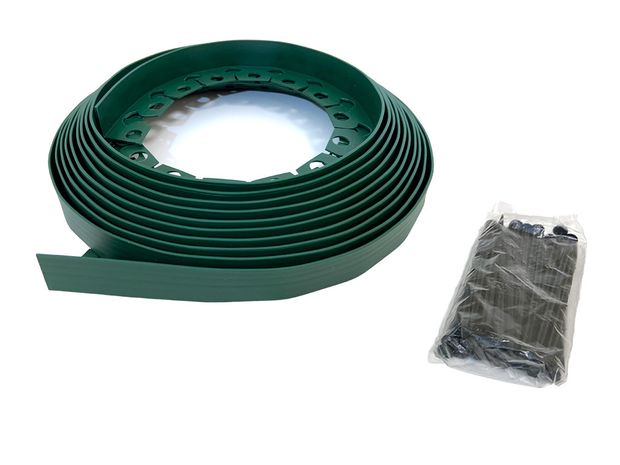 Садовый пластиковый бордюр ГеоПластБорд "Манго", высота 38 мм, 10 метров + 30 кольев, зелёный