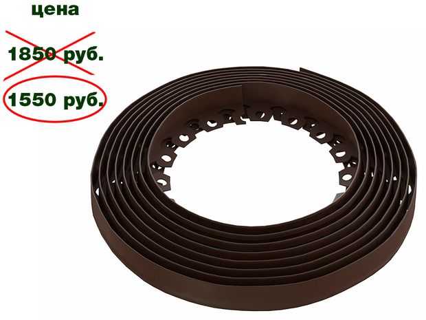 Садовый пластиковый бордюр ГеоПластБорд "Манго", высота 55 мм, 10 метров+30 кольев, коричневый