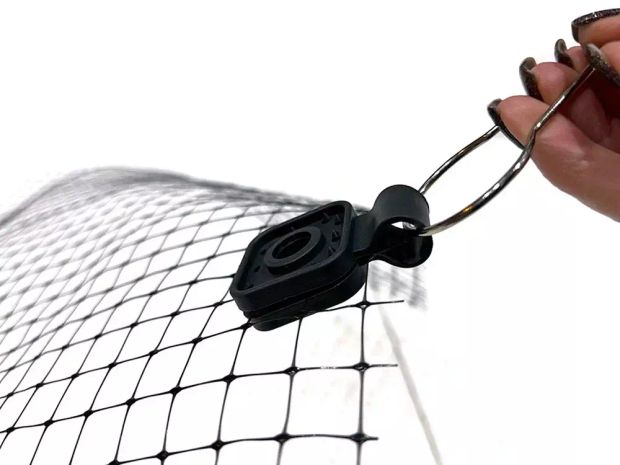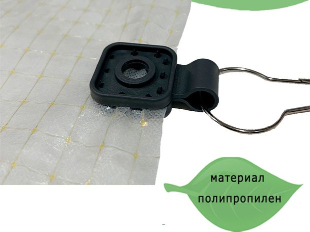 Клипса для крепления затеняющей или фасадной сетки. Наличие петли в креплении позволяет передвигать полотно по монтажным веревкам, если требуется периодически снимать и накидывать полотно. Имеется отверстие для колышка. Материал клипсы высококачественный полипропилен, устойчив к воздействию солнца или мороза. Площадь захвата люверса надёжно фиксирует полотно за счёт зубчиков и предотвращает разрыв в месте крепления, даже при сильном ветре.