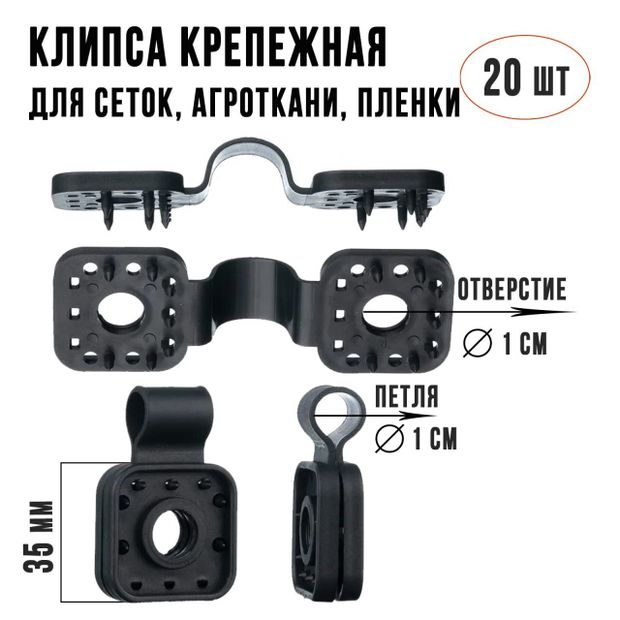 Клипса крепежная для сетки, пленки, агроткани, 20 шт
