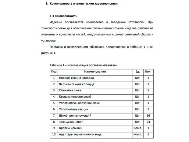 стыковки каждой секции колодца через уплотнительную резину. Условия