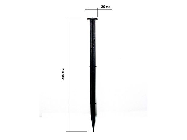 Дополнительные. В упаковке 30 шт. Длина 220 ммм, чёрные. Применяется для крепления десятиметровых бордюров "Манго" 38 и 55 мм и геотекстиля.