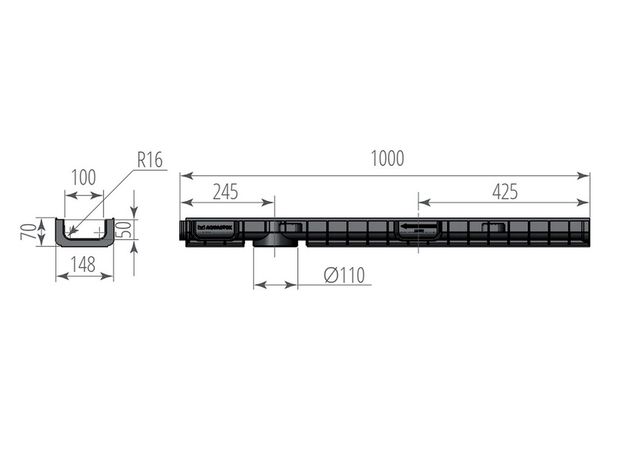 Лотки и пескоуловители имеют отводы, наметки для подключения лотков и труб