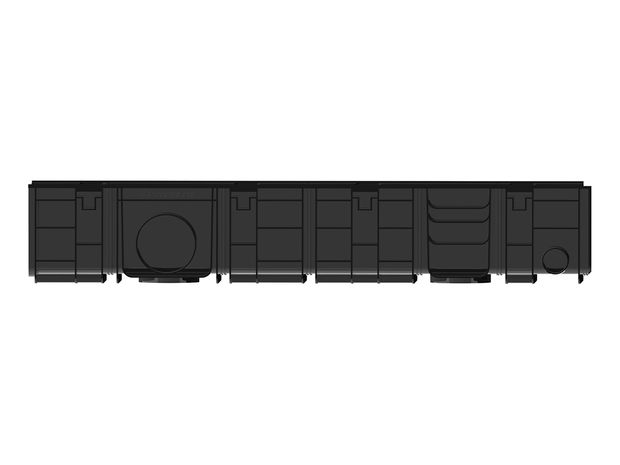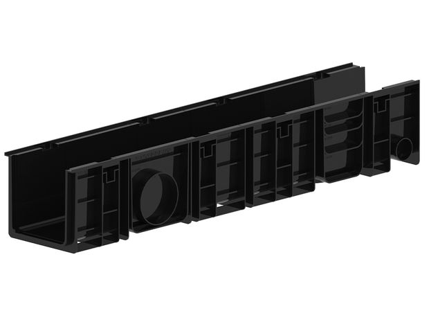 Высококачественные полимерные лотки позволяют обеспечить полноценное отведение поверхностных, дождевых, талых вод с поверхности дорожного или иного покрытия в дренажную систему. Кроме отведения воды, лотки предназначены для применения в контакте с любыми жидкостями, не являющимися химически агрессивными к материалу изготовления. Имеет пять мест реза. Допустимо подключение бокового лотка такой же или меньшей высоты. отверстия для присоединения отводных труб D50, D70, D110.