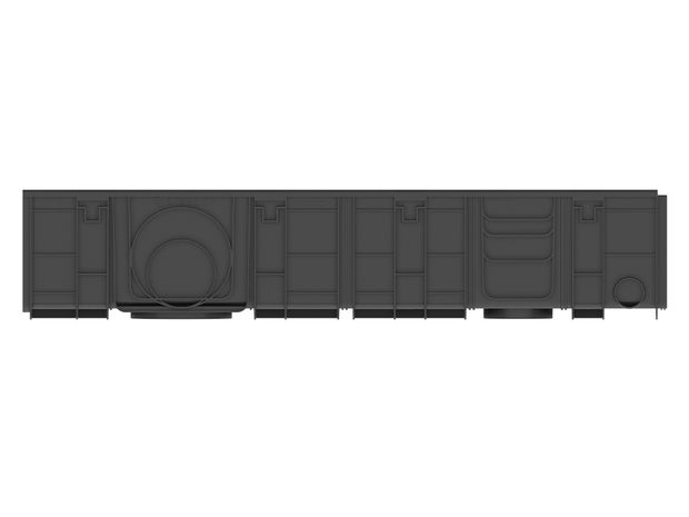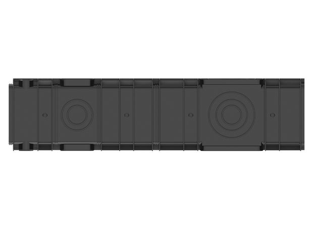Высококачественные полимерные лотки позволяют обеспечить полноценное отведение поверхностных, дождевых, талых вод с поверхности дорожного или иного покрытия в дренажную систему. Кроме отведения воды, лотки предназначены для применения в контакте с любыми жидкостями, не являющимися химически агрессивными к материалу изготовления. Имеет пять мест реза. Допустимо подключение бокового лотка такой же или меньшей высоты. отверстия для присоединения отводных труб D50, D70, D110.