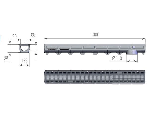 Лоток водоотводный пластиковый AQUA-TOP DN90 H100 с пластиковой решеткой
