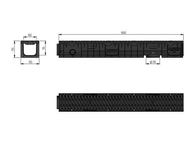 Лоток водоотводный пластиковый Master DN100 H135 (в сборе с полиамидной решеткой)