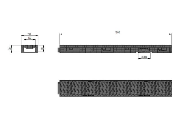 Лоток водоотводный пластиковый Master DN100 H70 ( в сборе с полиамидной решеткой)