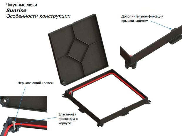 Квадратные чугунные люки AQUASTOK серии SUNRISE с классом нагрузки С250