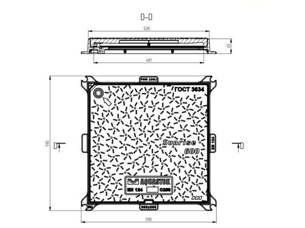 Люк чугунный квадратный AQUASTOK SUNRISE 600 С250