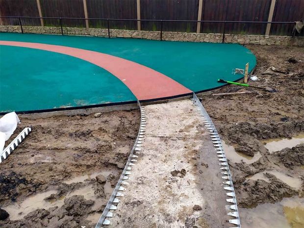 При установке на утрамбованный грунт подсыпайте 0,5-1 см песчано-бетонной смеси под основание бордюра.