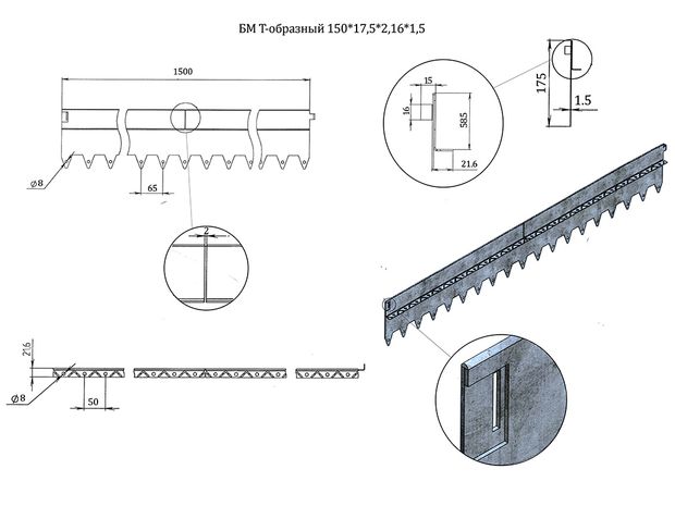 Секция длиной 120 см, высота 13,5 см, ширина планки 7 см, высота планки 7 см, толщина 1,5 мм. Толщина стенки в верхней части бордюра благодаря «плющу» составляет 3 мм. Бордюр металлический Т-образной формы, из оцинкованной стали предназначен для обустройства клумб, грядок, пешеходных дорожек и ландшафтных композиций, где необходимо разграничить две различные по высоте поверхности. Применяется при благоустройстве городских улиц, парков, пешеходных дорожек, территорий возле частных домов.