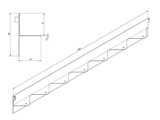 Металлический бордюр Т-образный 1200*135*70-1,5