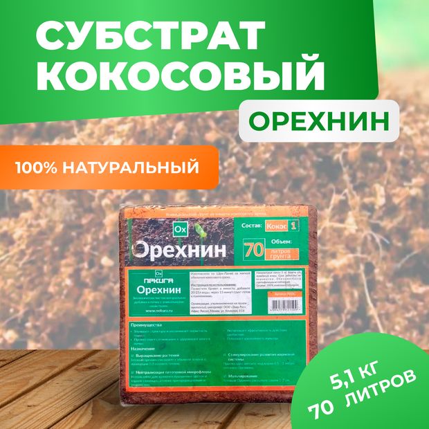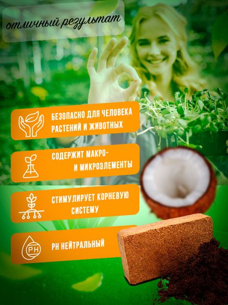 Натуральный грунт 100% растительный, изготовляется из скорлупы и волокон кокосового ореха без клея и пропитки, рН нейтральный. Грунт из скорлупы и волокон кокосового ореха – идеален для рассады.