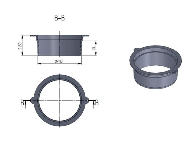 Применяется для организации подключения низкопрофильных пластиковых лотков к трубной канализации типоразмера DN110 в вертикальном направлении.