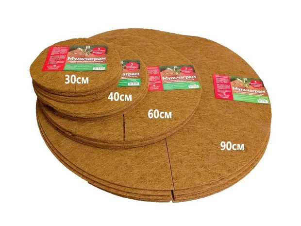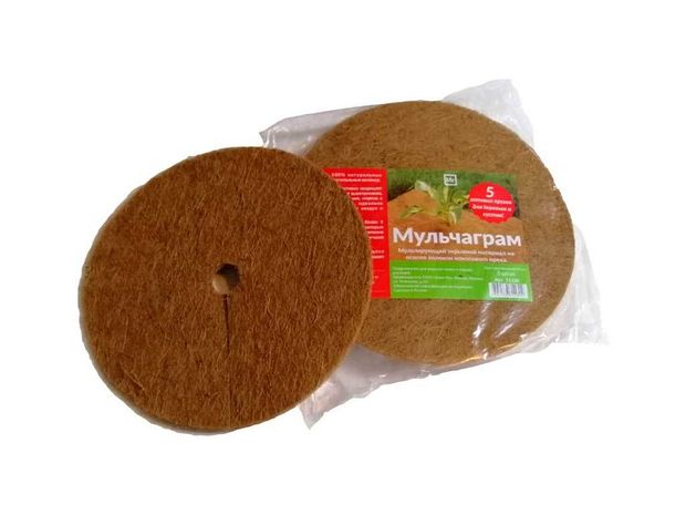 Мульчаграм – экологичный укрывной, мульчирующий материал толщиной 7 мм на основе волокон кокосового ореха, размер круга в диаметре 30 см, в комплекте 5 шт.