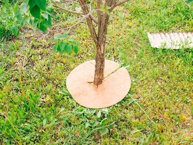 Аккуратно уложить Мульчаграмм на почву вокруг стволов растений в отверстия или через прорезь.