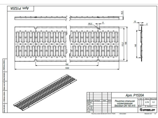 Решетка стальная штампованная SteeStart DN150 A15 под крепеж (Р1515К)