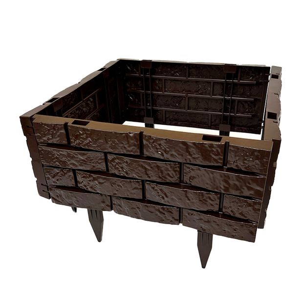 Садовый конструктор коричневого цвета применяется на садовом участке, как аксессуар ландшафтного дизайна, изготовлен из качественного пластика. Декоративным элементом можно оградить клумбы, цветники, высокие грядки, компостеры, создавая эстетичный внешний вид для любых растений, деревьев и цветов. Декоративное ограждение устойчиво к солнечным лучам, не трескается и не деформируется, очень легко моется. Для установки не требуется подготовка фундамента, а сама конструкция не нуждается в последующей покраске. В комплекте с 8 ножками, 8 заглушками и 4 соединительных элемента.