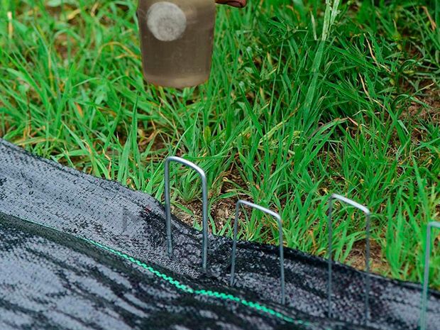 Скобы садовые 20 штук в упаковке. Высота скобы: 15 см; Ширина скобы: 3 см; Диаметр проволоки: 2,5 мм; Материал: оцинкованная сталь. Металлические садовые скобы отличное решение для закрепления геотекстиля и других материалов: затеняющей сетки, тентов, мембран, пленки и зимних укрытий. Обеспечивается надежный зажим материала между почвой и скобой. Кроме того, можно закрепить газонную решётку, защиту для стволов деревьев. Широко используются для теплиц и цветников, садовых хозяйств и огородов. Они легко и надежно удерживают материалы на поверхности грунта. Даже проливной дождь не сможет нарушить крепление, если оно правильно выполнено с помощью садовых скоб.