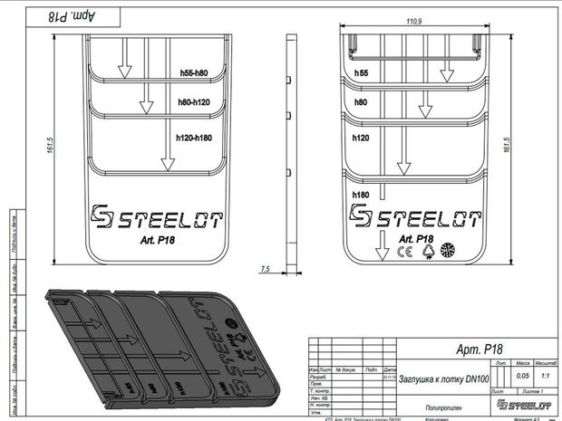Заглушка также может служить переходом между лотками SteeStart Dn100 в случае установки лотков разных высот в одну линию (создавая перепад высот при отсутствии естественного уклона)